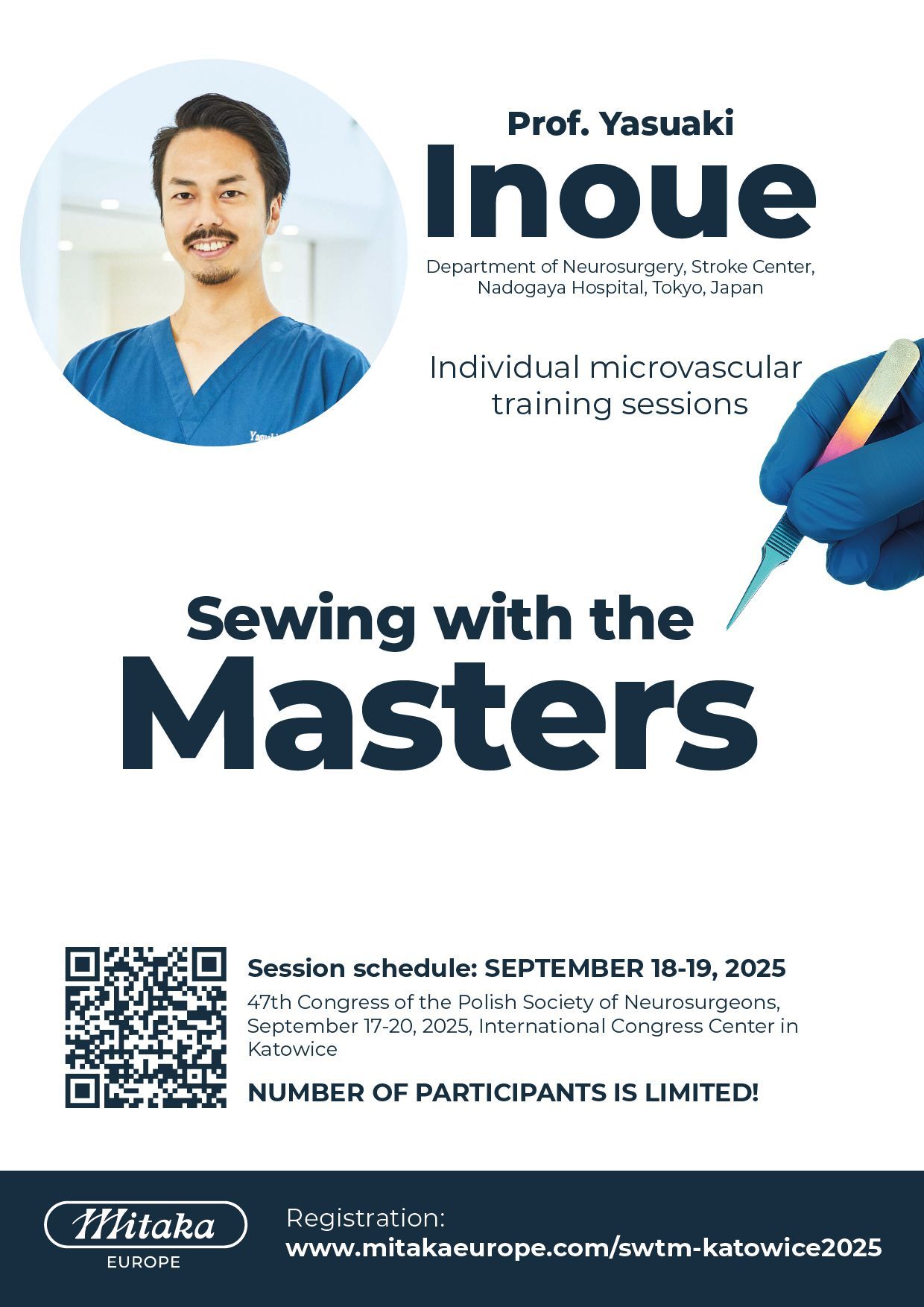 The Mitaka Sewing with the Masters course follows a proven format, well established at leading international and European conferences. Participants perform microvascular anastomoses under the magnification of Mitaka surgical microscopes, designed specifically for microvascular neurosurgery.